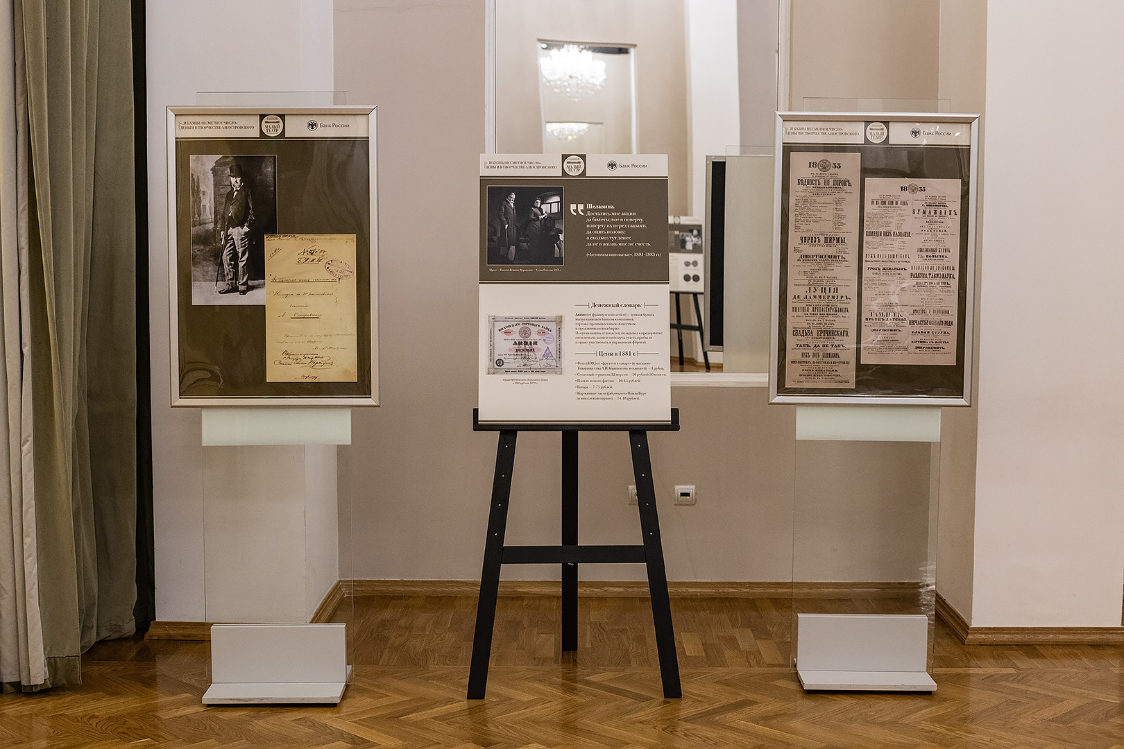 Экспозиция посвящена одной из ключевых тем в творчестве Александра Николаевича – теме денег. Изображения денежных знаков и ценных бумаг из собрания музея Банка России, представленные на стендах выставки и дополненные цитатами из пьес Островского, а также фотографиями из спектаклей, погружают зрителя в эпоху, когда считали на целковые и алтыны, сделки заключали на кредитные билеты, выписывая вексель, а золотые полуимпериалы сберегали как сокровище.